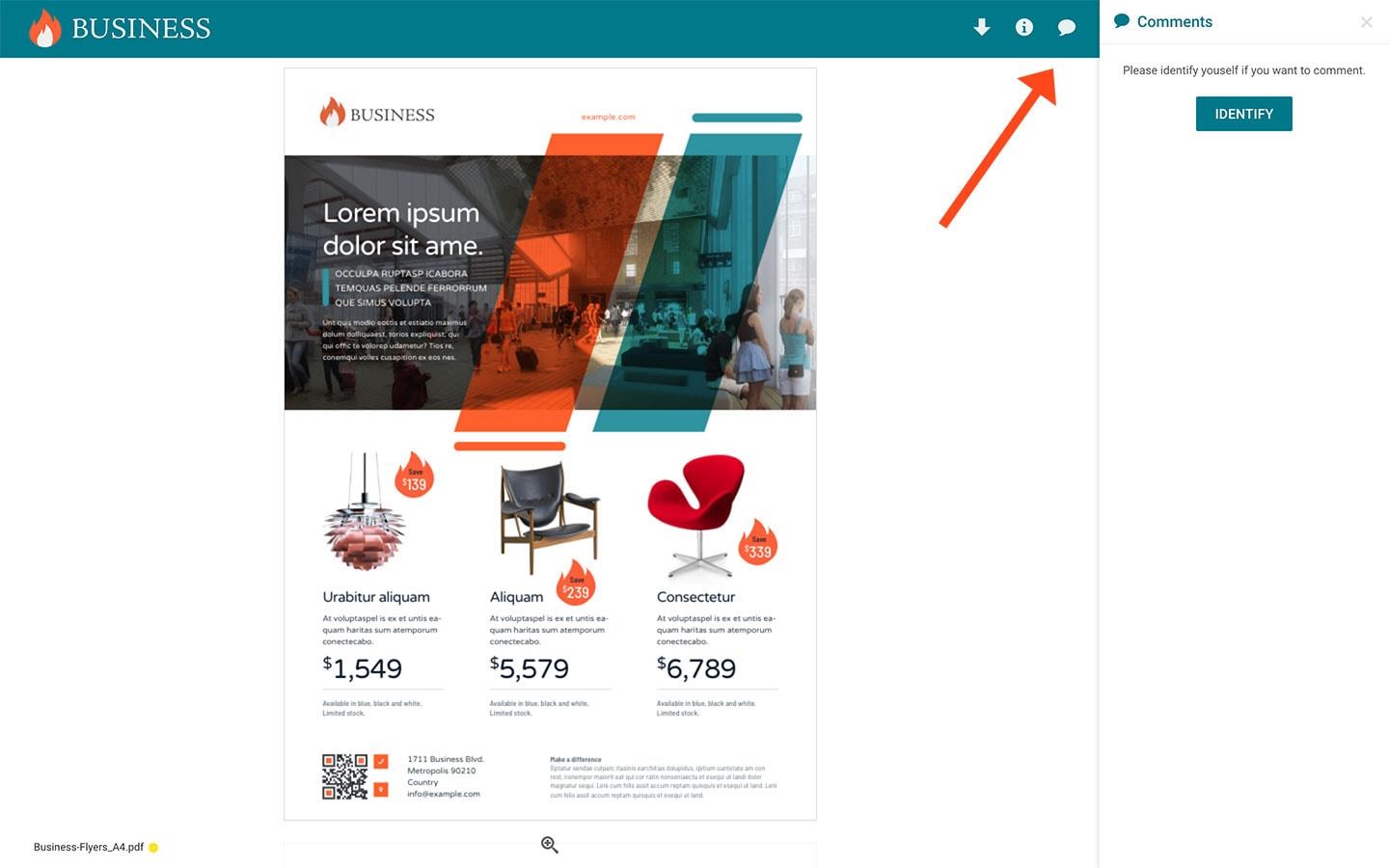 With Filecamp, you can comment and annotate changes directly onto a PDF or any image file. Here, you are all viewing the same file with access to commenting on and viewing replies from other stakeholders. And you can add markers to the file, to pinpoint exactly where you want the changes to be made. This transparent collaborative online solution saves time and reduces revisions.