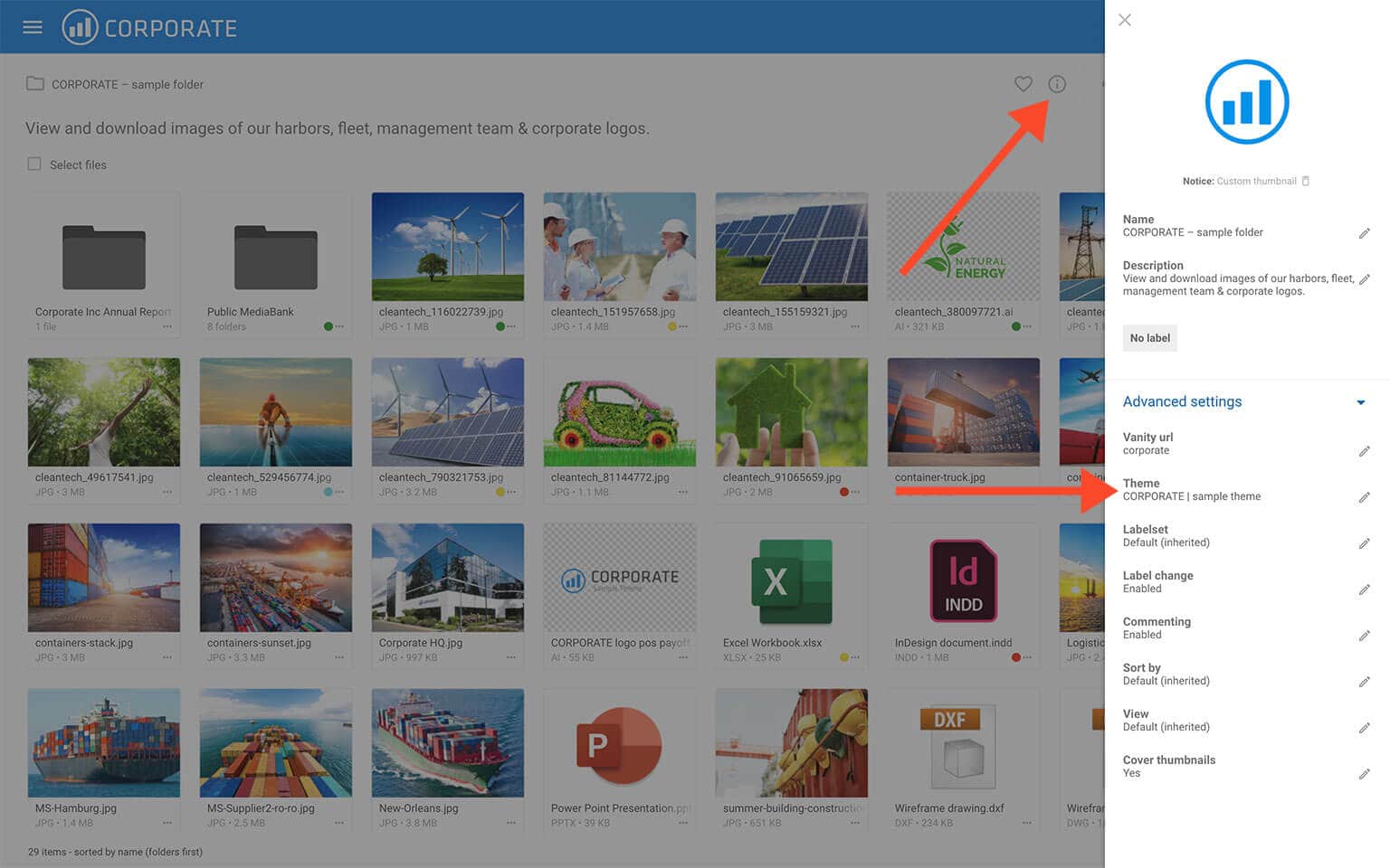 Notice: Only Administrators or users with permission to "Edit files and folders" and "Manage themes" can assign themes to folders. Read more about admin permissions.